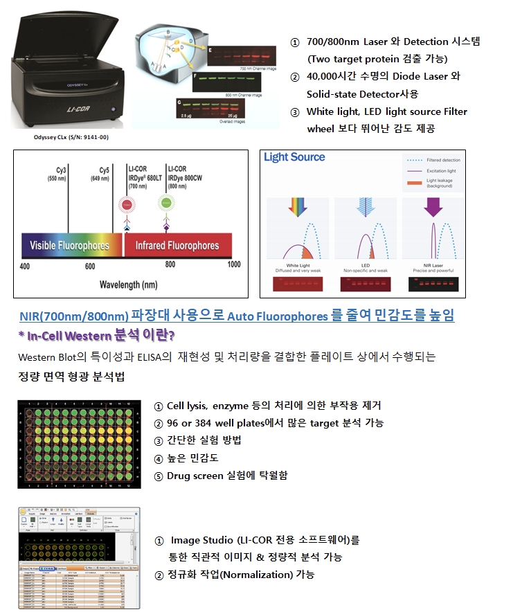 ODYSSEY CLx IR SCANNER [판매완료] 40,000,000 원 ODYSSEY CLx 오디세이 적외선 이미징 시스템은 멀티플렉스 웨스턴 블로팅과 IRDye 근적외선(NIR) 형광 염료로 표시된 2차 항체를 사용하여 정확한 단백질 검출 및 정량화가 가능합니다. 상세 정보 및 특이사항 물건위치(보관위치) 경기도 화성 카달로그 다운로드 구매 문의하기 제품소개 ODYSSEY CLx IR SCANNER [판매완료] 제품소개 목록으로